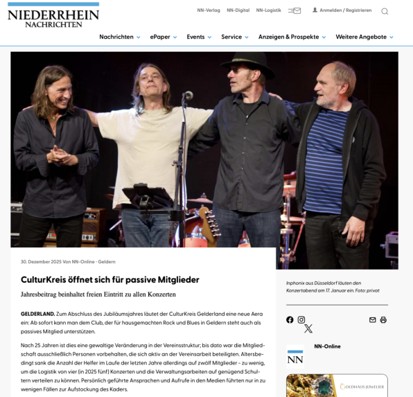 Zum Abschluss des Jubiläumsjahres läutet Euer CulturKreis Gelderland eine neue Aera ein: Ab sofort kann man dem Club, der für hausgemachten Rock und Blues in Geldern steht auch als passives Mitglied unterstützen.