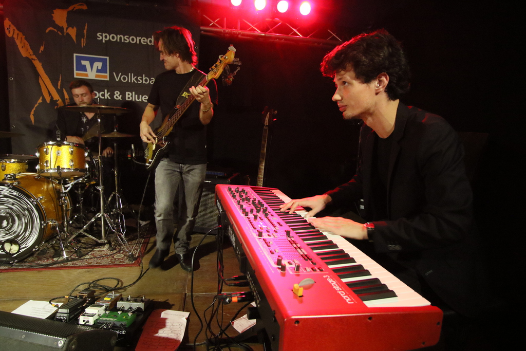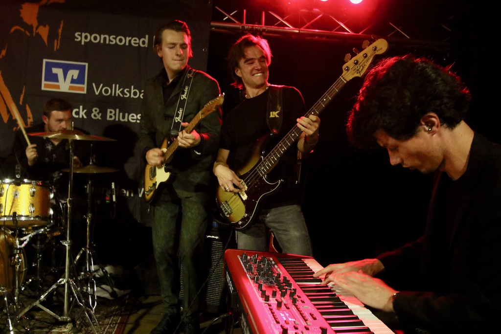 Seine drei Mitstreiter, Bruder Florian Bevelander (26) bedient das Schlagzeug, Kevin Clerence (26) spielt den Bass und Sander Poley (28) spielt ein Tasteninstrument, das sich als geniale Mischung aus e-Piano und Hammond Orgel erweist.